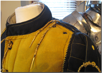 Fittings We custom make each arming doublet to fit not only our client, but where possible their armour as well. We look to meet with our clients half way through the production of their Arming Doublet to ensure the fit is correct;and to identify the exact mounting points for their armour. Our standard Arming Doublet design comes with 50+ hand sewn eyelets to harness your armour. |